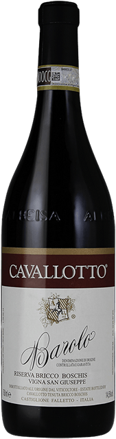 Nằm tại cửa ngõ của Castiglione Falletto, tại trái tim của khu vực Barolo, trên dốc của Bricco Boschis, bạn sẽ tìm thấy Cave Cavallotto trải dài trên 25 hecta đất. Từ năm 1928, gia đình Cavallotto đã sở hữu Tenuta Bricco Boschis. Năm 1946, họ là những người trồng nho đầu tiên tại Castiglione Falletto lên men toàn bộ nho trên mảnh đất của họ. Vào năm 1948, họ đã ra mắt phiên bản rượu BAROLO đầu tiên của riêng họ. Ngày nay, con cái của Olivio - Laura, Giuseppe và Alfio, là thế hệ thứ 4 đang làm việc trong điền trang gia đình và tiếp tục biến những trái nho từ vườn nho của họ thành những dòng rượu DOC và DOCG xuất sắc.