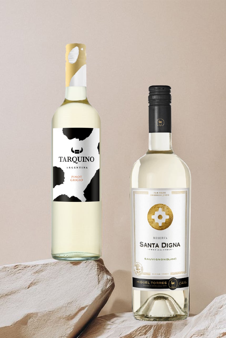 Một cặp rượu vang trắng sảng khoái và thanh mát - mang đến cảm giác nhẹ nhàng và tươi mới. Sự lựa chọn hoàn hảo cho những buổi chiều thư giãn hay bữa ăn nhẹ nhàng.