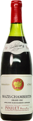 ĐẶC ĐIỂM NẾM THỬ: Poulet Pere et Fils, Mazis Chambertin Grand Cru mang hương thơm của anh đào đen, quả mâm xôi, mận, hoa violet, hoa hồng, cam thảo, đinh hương và hạt tiêu. Qua thời gian trưởng thành, chai rượu có màu màu đỏ đậm đà và ổn định sắc thái trong suốt một thời gian dài. Cảm nhận được hậu vị kéo dài và dư vị đậm đà